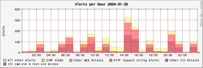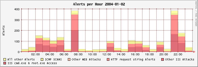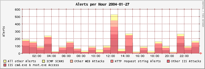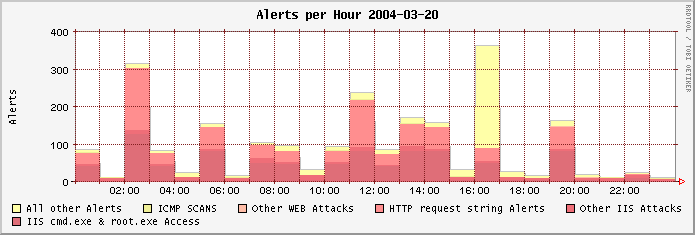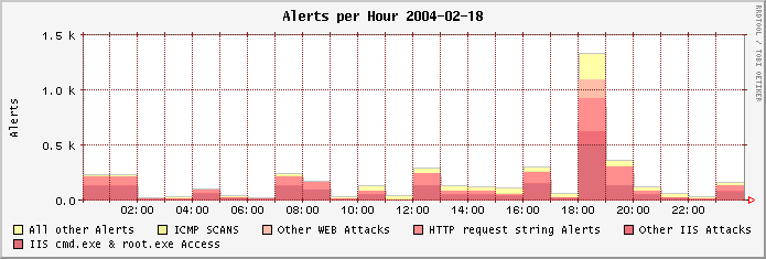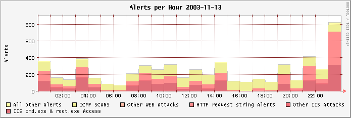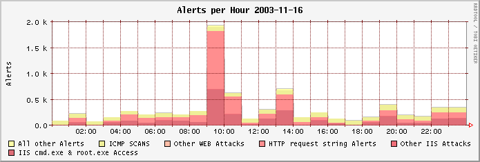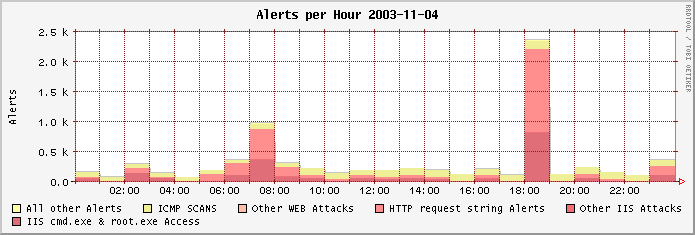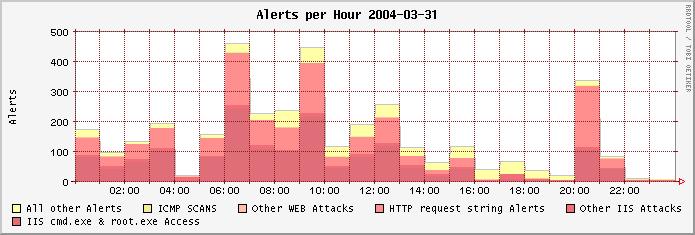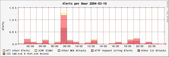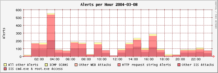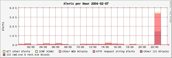 The following graphs show the number of the monitored attacks on each day, divided into the most significant classes.